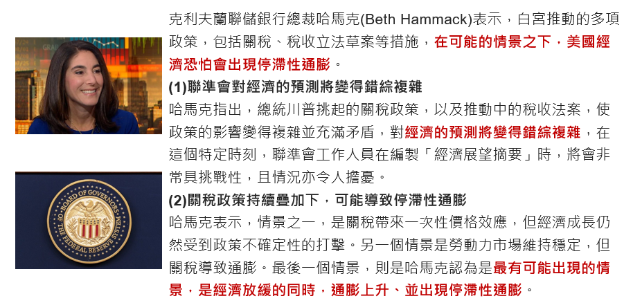 FED官員哈馬克表示,停滯性通膨是美國經濟最有可能面臨的情境